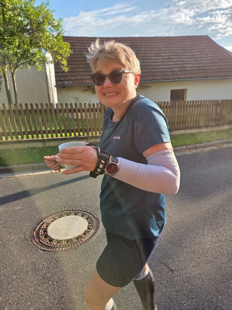 Ab da wurde es fast magisch. Scooter in voller Lautstärke, Meli an meiner Seite und ein Tempo, das ich selbst nicht mehr erklären konnte. Nach rund 93 Kilometern fragte ich Meli: „Darf ich laufen?“ Sie schaute mich an, als wollte sie sagen: „Bist du irre?“ – aber sie nickte. Also joggten wir. Nicht sehr schnell und auch nicht sehr lange, aber wir joggten – nach über 93 Kilometern und weit über 24 Stunden in denen ich bereits wach war (hab ich schon erzählt, dass ich um 5 Uhr aufgewacht bin vor Aufregung?).
