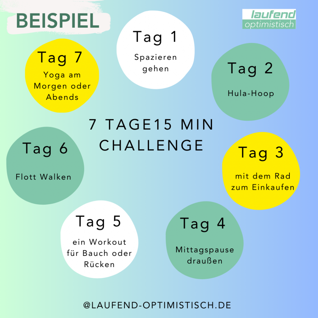 Wenn ihr euch heute „nur“ 15 Minuten Zeit für Sport nehmt, sind das in einer Woche bereits