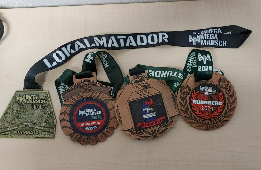 Am 09.11.2024 marschierten Doris und ich erneut durch Nürnberg. Mein zweiter, ihr dritter Start beim Megamarsch in Nürnberg. Deswegen wurde Doris Lokalmatador (dreimal gefinished = eine zweite Medaille).