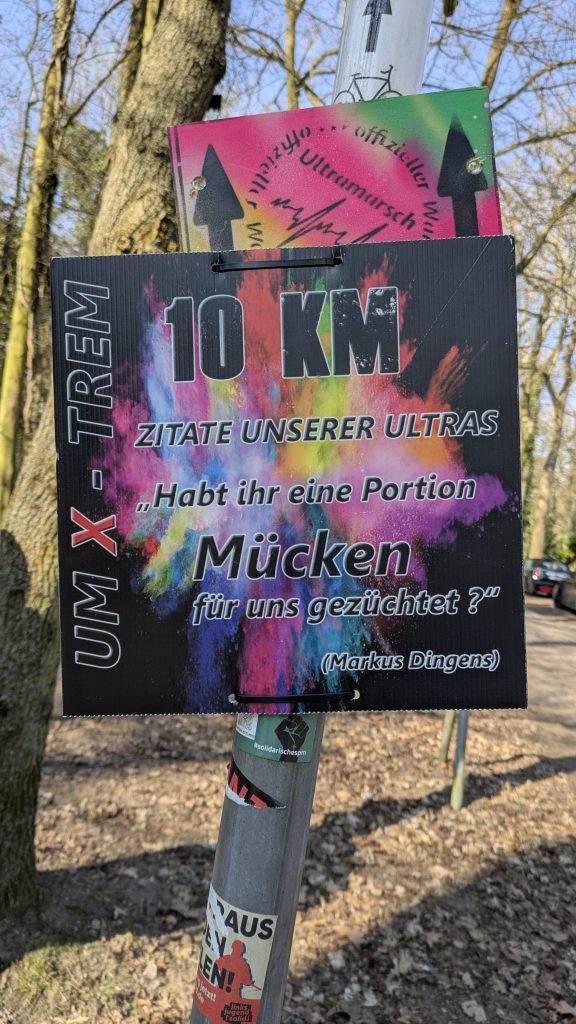 Am 22.03.2025 sind wir allerdings zum ersten Mal bei einer Ultramarsch Veranstaltung gestartet, die eben auch genauso heißt. Der Ultramarsch Berlin. Hier stehen zwei Distanzen zur Wahl: 75 KM oder 120 KM. Laufen oder sog. Speedhiking (Wandern mit Zeitlimit) ist möglich. Wir hatten uns für 75 KM Wandern angemeldet. Zeitlimit 17 Stunden (wobei wir auch bei einem Finish bis 18 Std noch eine Medaille bekommen hätten).