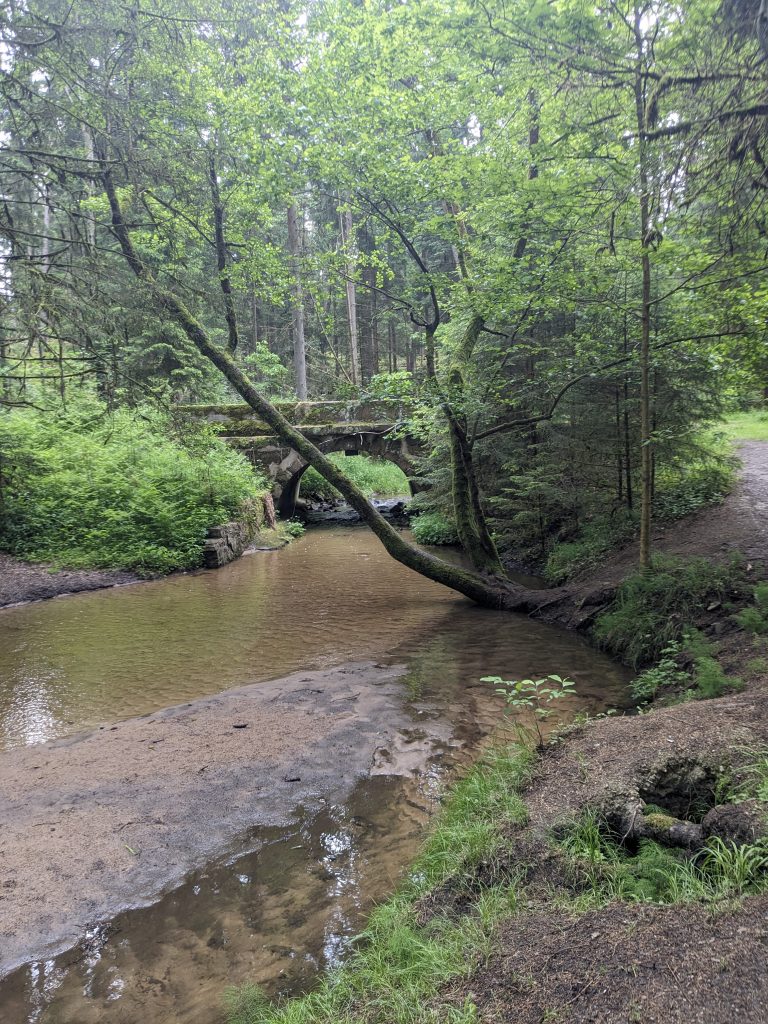 Dennoch fanden wir die Strecke schön. Auch einen Biber und ein Mühlenrad erblickten wir unterwegs und immer wieder gingen wir am Wasser entlang. Auch der Untergrund war sehr angenehm. Selbst wenn es wärmer gewesen wäre, hätten wir viel Schatten unterwegs gehabt. Definitiv ein Pluspunkt.