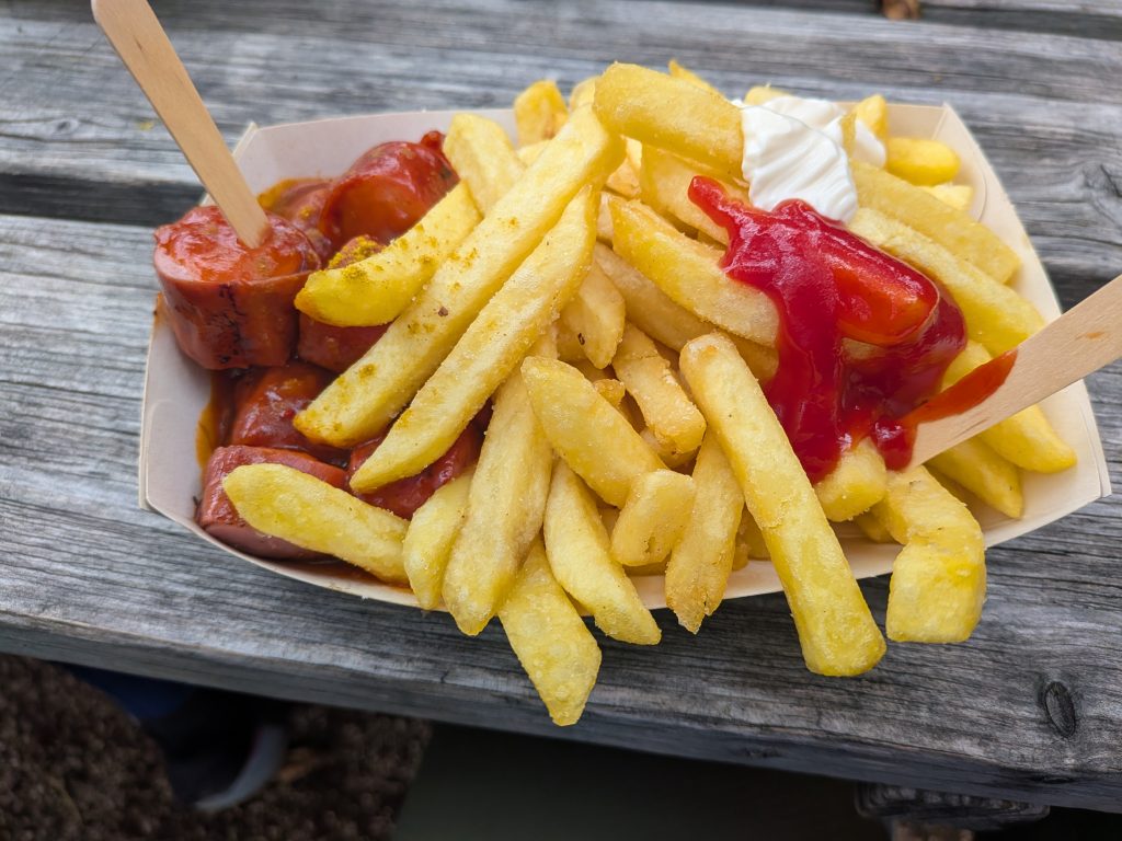 Im Ziel spielte Live-Musik, das Lagerfeuer raschelte und wir gönnten uns eine deftige Currywurst samt Pommes, bevor ich uns mit dem Auto wieder nach Hause chauffierte.