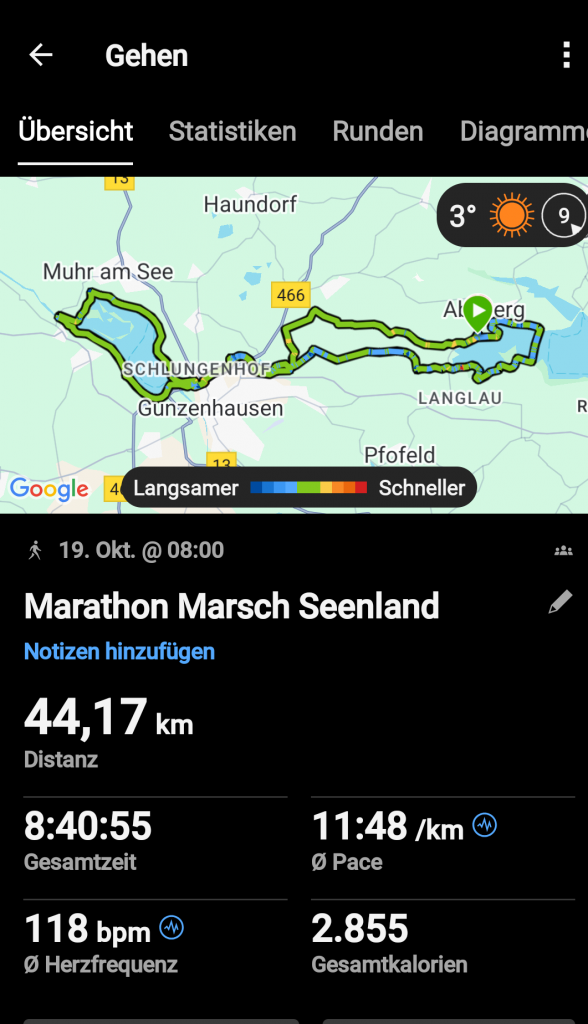 44 Kilometer, 8 Stunden 40 Minuten inklusive Pausen – und diesmal waren wir zu dritt: Doris, Simone und ich.